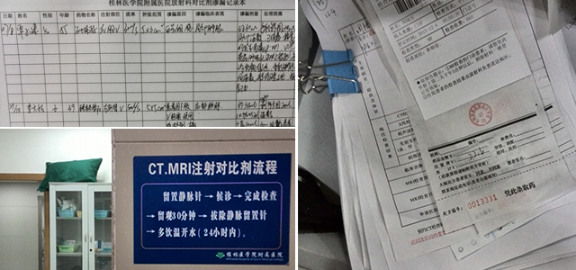 在医院内的触控一体机上,只需要手指轻点触碰,就能够完成专科护理工作的操作、治疗、护理记录的全过程,实现无纸化、无缝对接的精准护理与管理。这一幕日前在桂林医学院附属医院放射科悄然上演。 据桂林医学院附属医院放射科护理团队介绍,每天到该院放射科检查的患者CT平扫检查近400人,其中CT/MRI增强的患者近150人,平均每2-3分钟完成一个平扫检查的患者,6分钟左右完成一个平扫+增强检查的患者,在这么短暂时间内包括了患者上下检查床的时间,技术员给患者摆放体位,训练呼吸、护士抽吸药物、注射药物等系列工作。如何解决烦琐、大量的护理问题,提高速度与效率,更准更快地配合技术员的工作,提高护理质量与安全,是摆在放射科护理团队面前的难题。并且由于以前的人工记录,当换了一检查护士或N天后,此患者再次检查时,由于不知道上次的对比剂渗漏情况,不能及时的调取以前的使用记录,本次仍然采取上次的对比剂,就会发生难以避免的损害。
