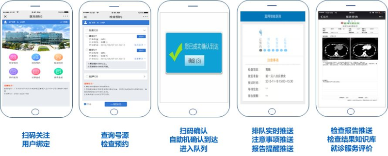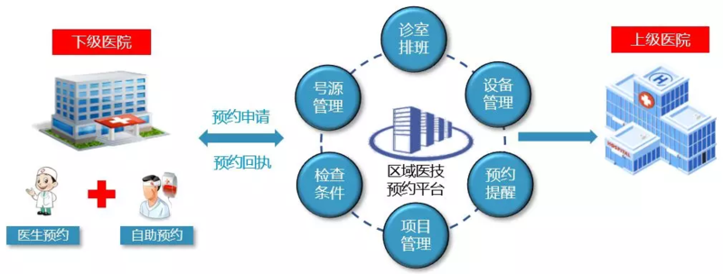 区域医技检查预约可以做到院内预约、跨院区预约、跨医院预约,保证区域范围内的应用,同时配合自助机预约、微信预约、医技科室预约、临床科室预约、预约中心预约等全场景的预约应用。配合上移动应用,可实现“预约有提醒、等待有提示、异常有跟踪、结果有反馈”。