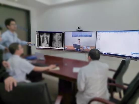 蓝网影像远程会诊系统,可助力构建基层首诊,分级诊疗,双向转诊的就医模式;有效地将患者进行分流。 蓝网影像远程会诊系统中可建立专家资源库,涵盖接入的相关医院。通过对优质的专家资源统筹安排,实现跨地域的远程医疗服务。 发热患者可到附近的医疗机构先通过血常规、肺部ct等检查手段判断是否为病毒性肺炎,随后根据检测结果判断是否需要转诊到医疗救治定点医院。当患者在基层医院做完检查,医生阅片完成后发现存在不确定因素或者遇到疑难病例需要向上级医院求助时,可通过蓝网影像远程会诊系统以音频、视频会诊的方式实现即时会诊。即时会诊功能可满足实时文字交流、高保真语音通讯、高质量的视频聊天、报告影像等文件的传输以及远程桌面指导等需求。可达到专家现场接诊的效果。