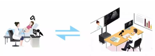 超声检查时,基层医疗机构可与上级医院医生建立远程诊断连接。上级医院医生可实时查看基层医疗机构医生采集的超声影像和采集操作手法,通过视频、语音交互实时指导分院医生进行超声检查和影像采集处理,并对基层医疗机构医生提出必要的诊断提示和建议。