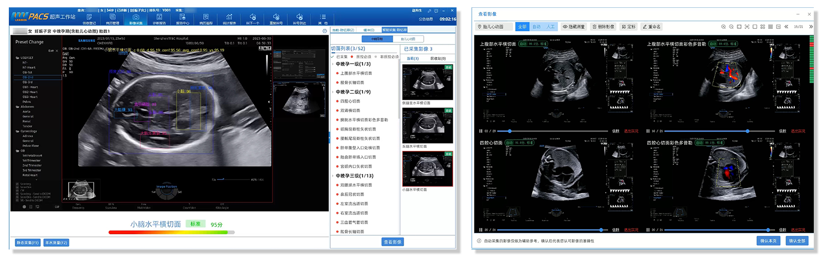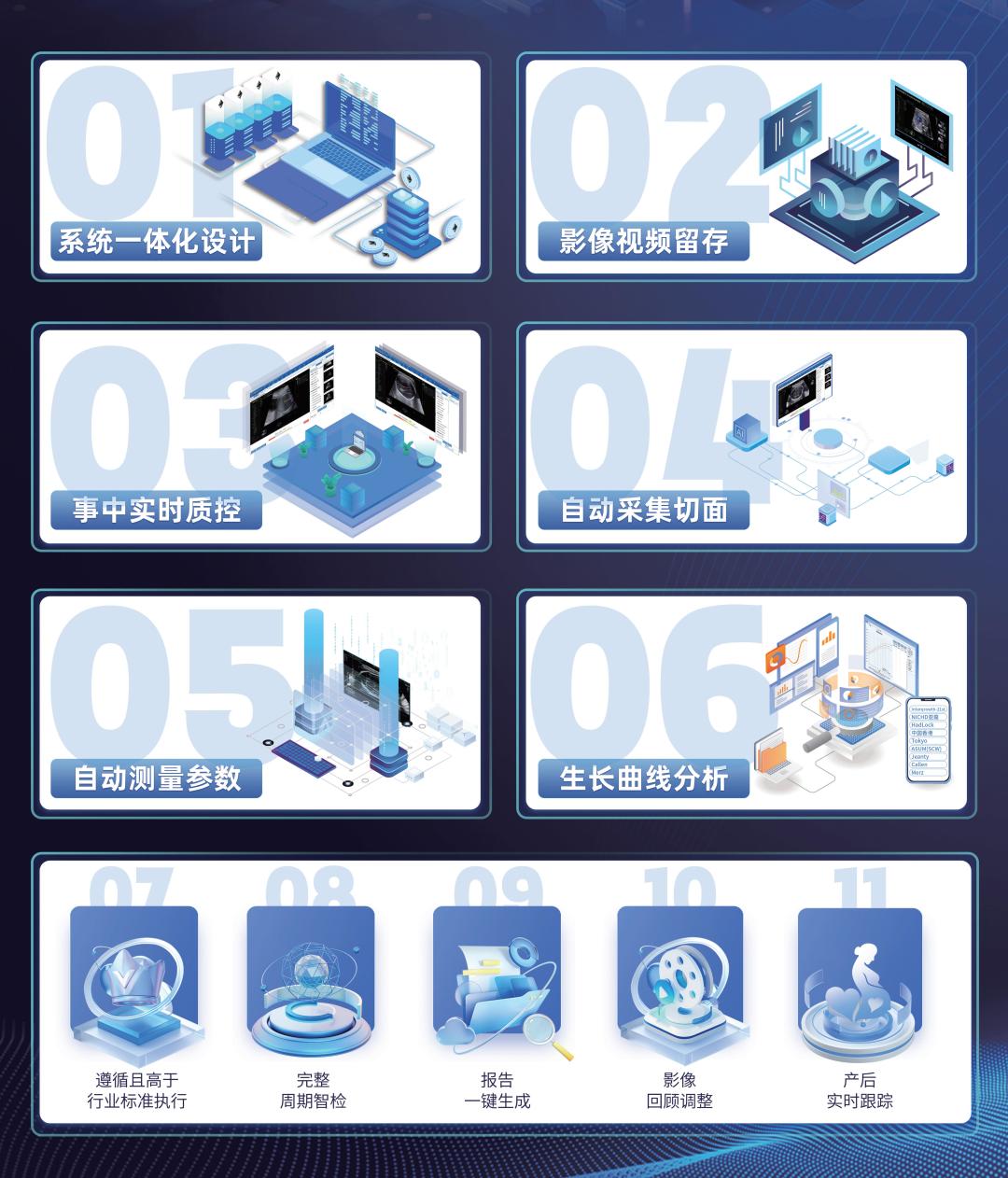 产前超声实时智能检测系统是全国首个真正应用人工智能技术的产前超声智能工作站,从图像自动抓取、自动参数测量、报告一键生成到事中实时质控、预后随访,提供了一个全面集成化的解决方案。该平台极大地提升了产前筛查的效率和准确性,释放医生的时间,让他们更专注于胎儿解剖结构的深入观察,同时还能充分发挥在科研领域的潜力。