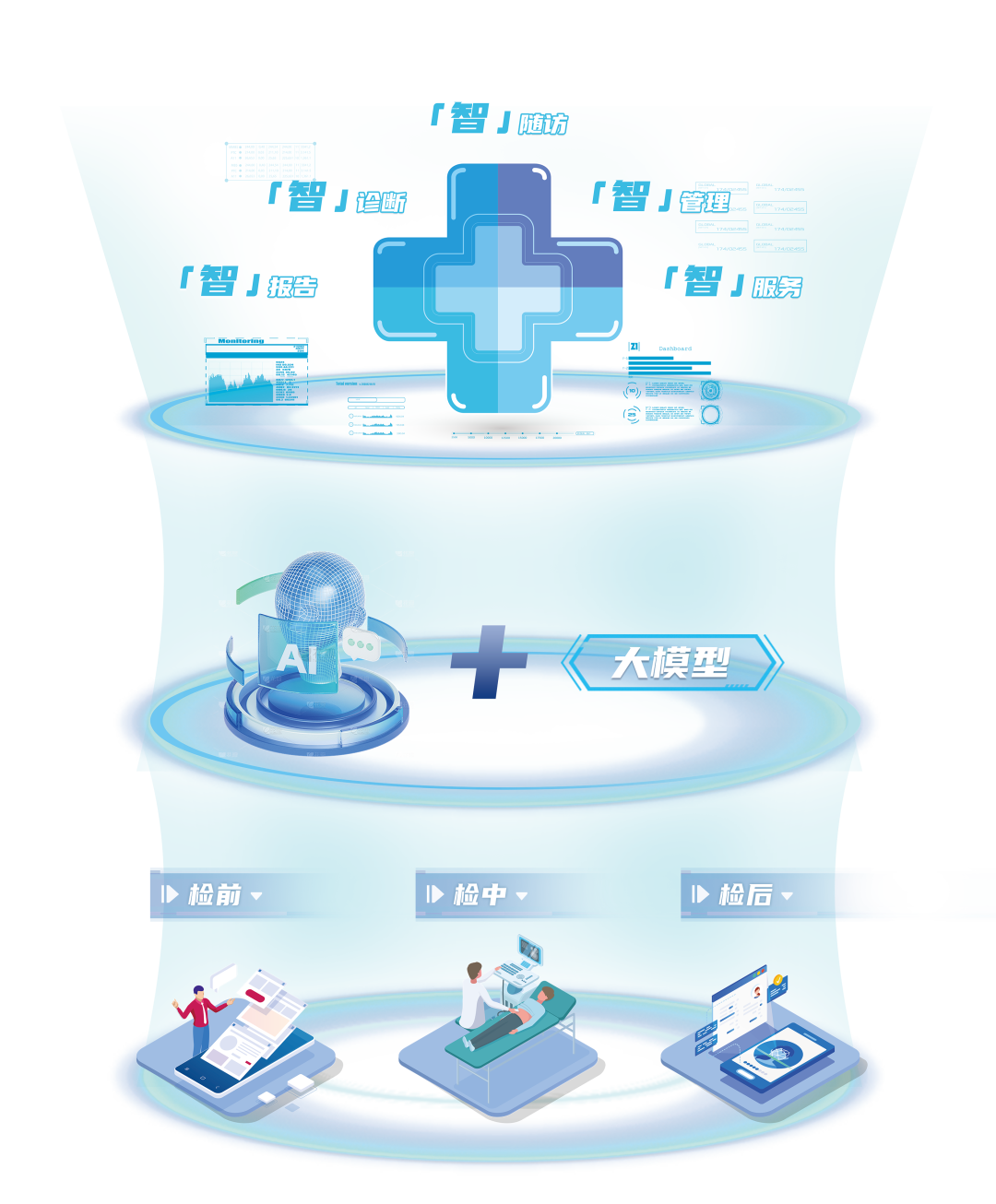 智慧超声解决方案是通过深度融合人工智能技术,实现从检前的智预约,检中的智诊断、智报告,检后的智质控、智管理的全流程智能化服务。极大地提高了诊断的准确性和效率,减轻了医生的工作负担,使得更多患者能够享受到高质量的医疗服务。